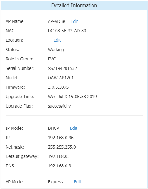 In the Detailed Information session, scroll down to the IP Mode field and click Edit.