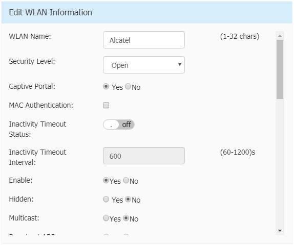 The first step is to configure the WLAN for the hotspot service, the access to the RADIUS server and accounting. After that, you need to enter the Walled Garden.