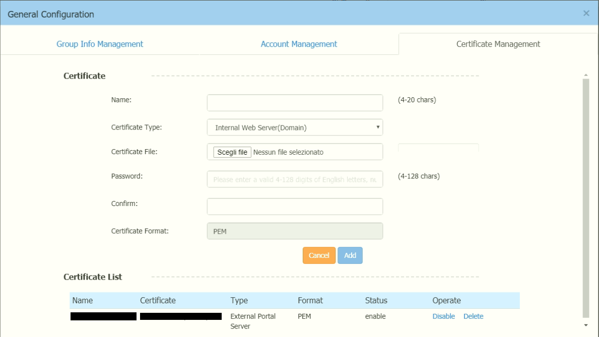 Go to Certificate List>Operate, press Enable to enable the certificate.