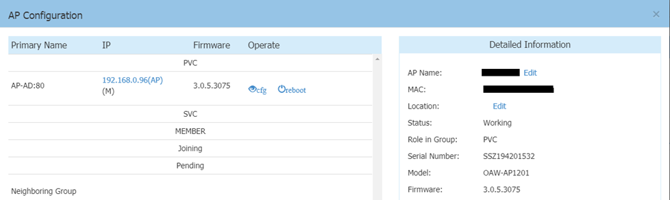 Now you need to configure the AP. By default, the AP is configured with active DHCP. Click on the gear icon of the AP.