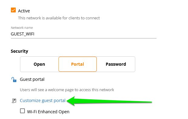 Once you have saved the entries, click the “Customize guest portal” link to modify the captive portal or splash page.