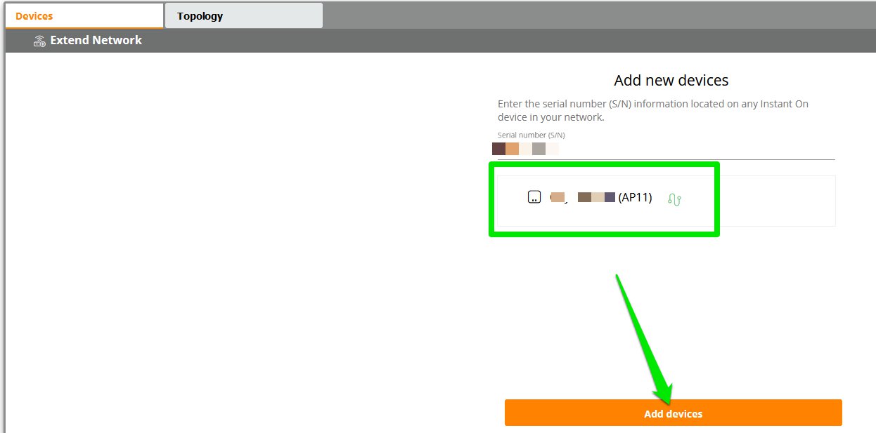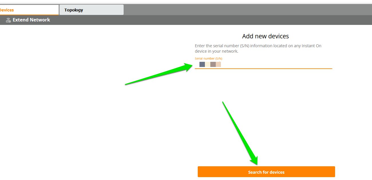 Enter the serial number of your Instant On AP and click the Search for devices button.