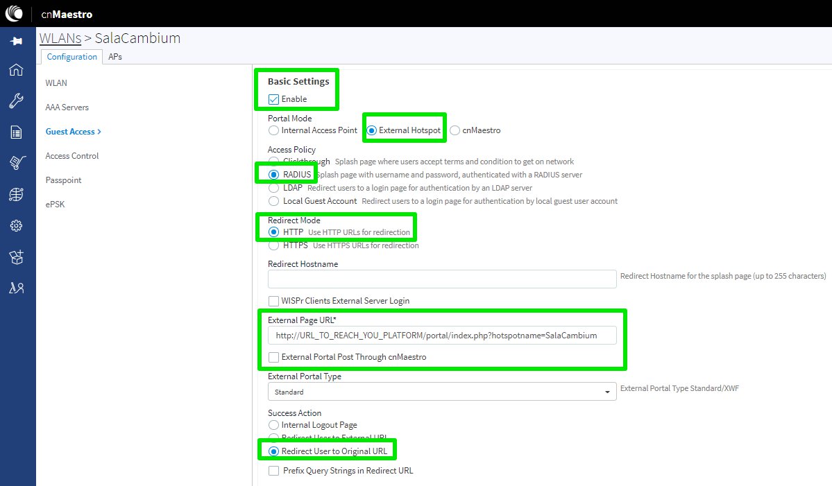 Configure the cnMaestro section and enter the relevant information in the following fields:
