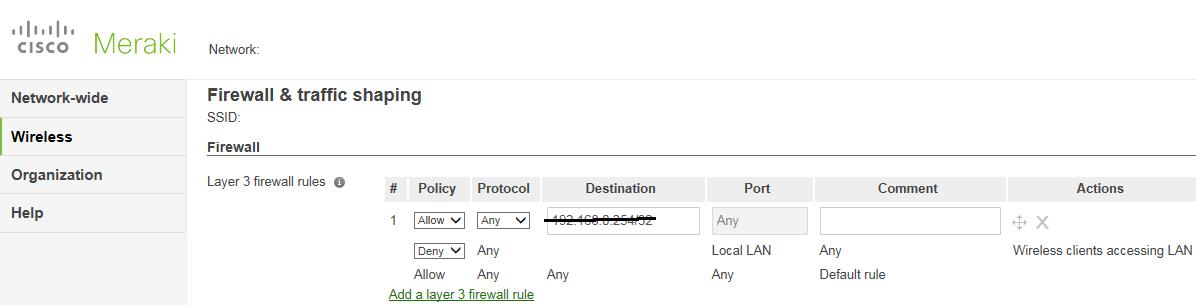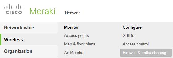 Go back to Wireless menu. Below the Configure section, click Firewall & traffic shaping.