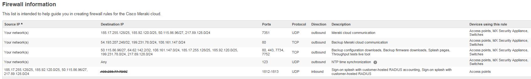 These are all the necessary steps to configure Meraki Cloud dashboard so as to interact with the Platform. Other fields in Meraki Cloud dashboard can be configured according to your needs.