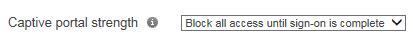 Select “Block all access until sign-on is complete” in the Captive portal strength field.