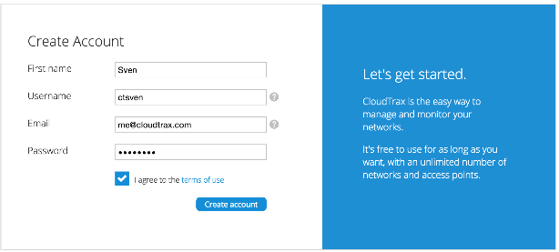The first time you use CloudTrax, you need to create an account. This account will be your login for all networks you will create.