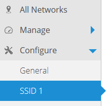 Select the Configure menu and then click SSID 1 to view the SSID configuration page.