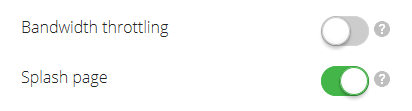 Then, from the Captive portal section, disable the Bandwidth throttling option and enable the Splash page option.