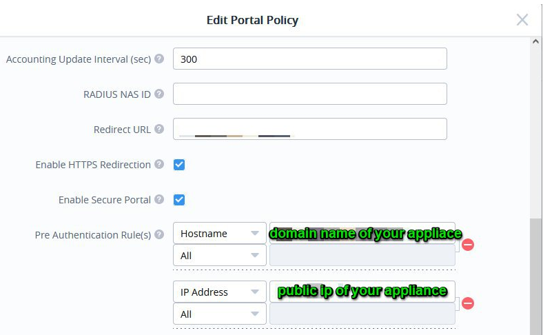 Under the Portal Policy section, complete as follows: