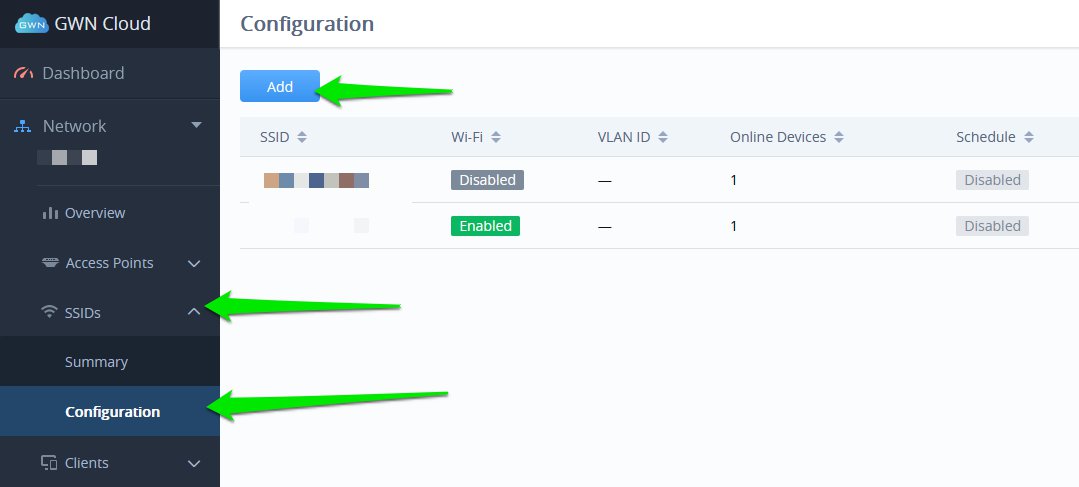 From the User Interface, click on SSIDs > Configuration and select Add.