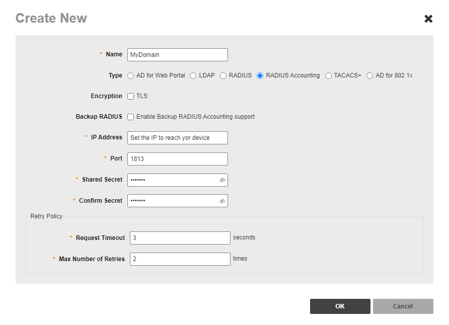 In the Type field, check the Radius Accounting checkbox as shown Figure Radius Accounting