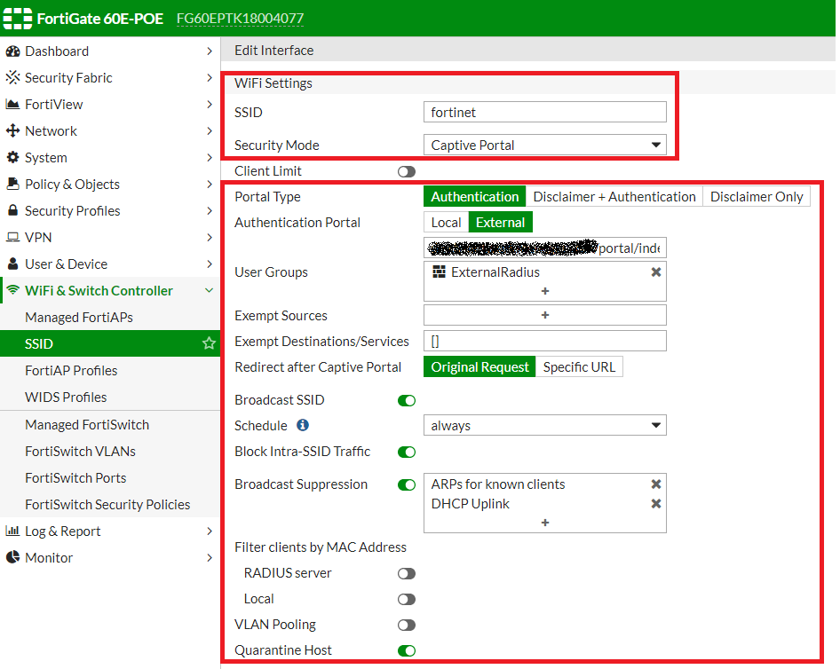 In the SSIDs field, add the SSID previously created in “Configuring SSID for the Hotspot WiFi Network”.