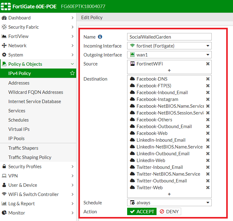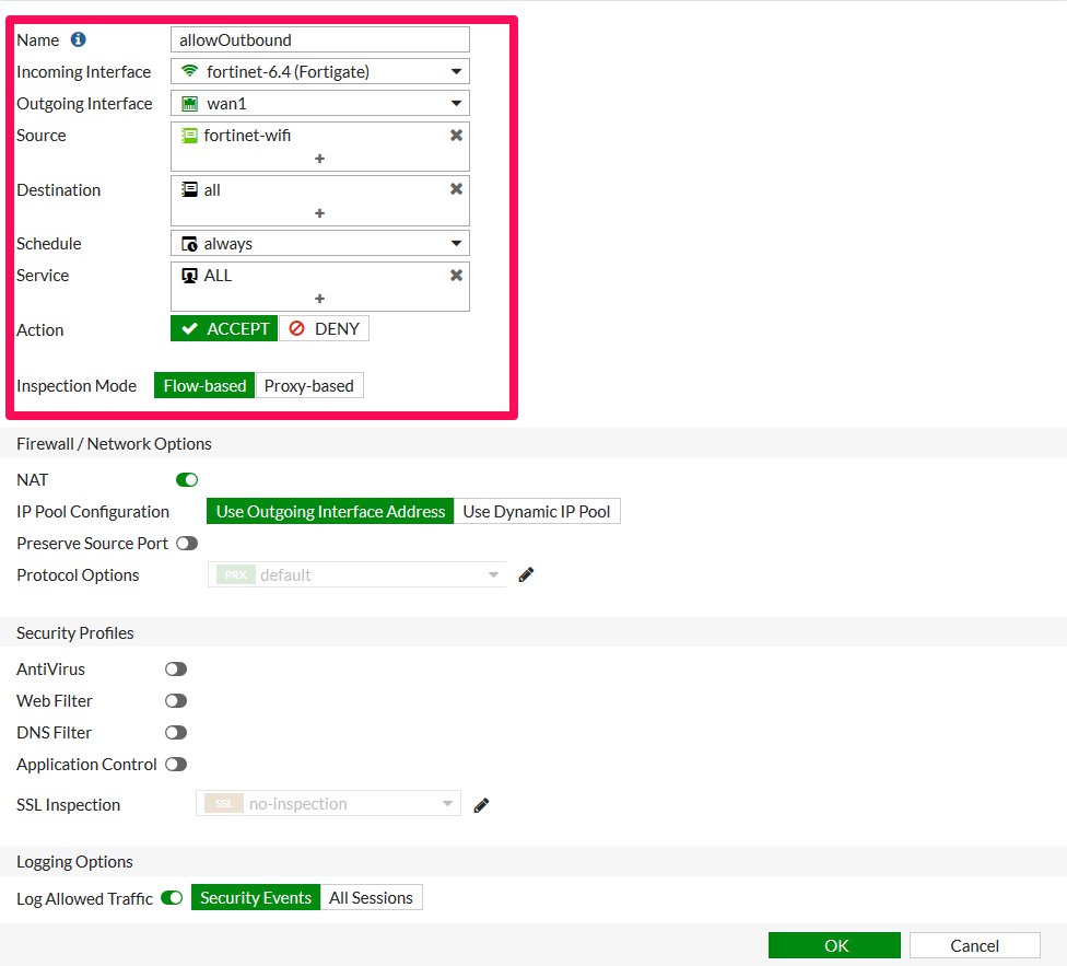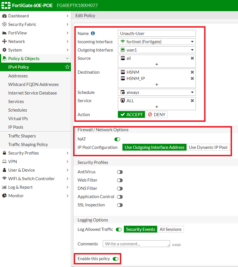 Lastly, configure an outbound rule to let the customers surf the web after the login.