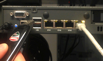 To allow Wi5stars to send and receive SMS and you do not want to use an external SMS gateway, you have to connect the GSM modem, supplied with Wi5stars appliance, into one of the two USB ports on the back of the appliance.