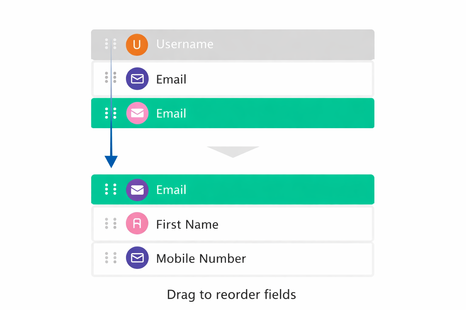 Fields can now be reordered via drag and drop to define the exact display sequence during registration.