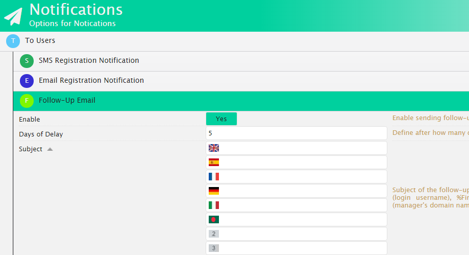 NEW! Now you can also enable an automatic sending of a follow-up email. You can surprise users with an automatic customised email requesting a feedback on the stay, a completion of a survey, or sending a promotion.